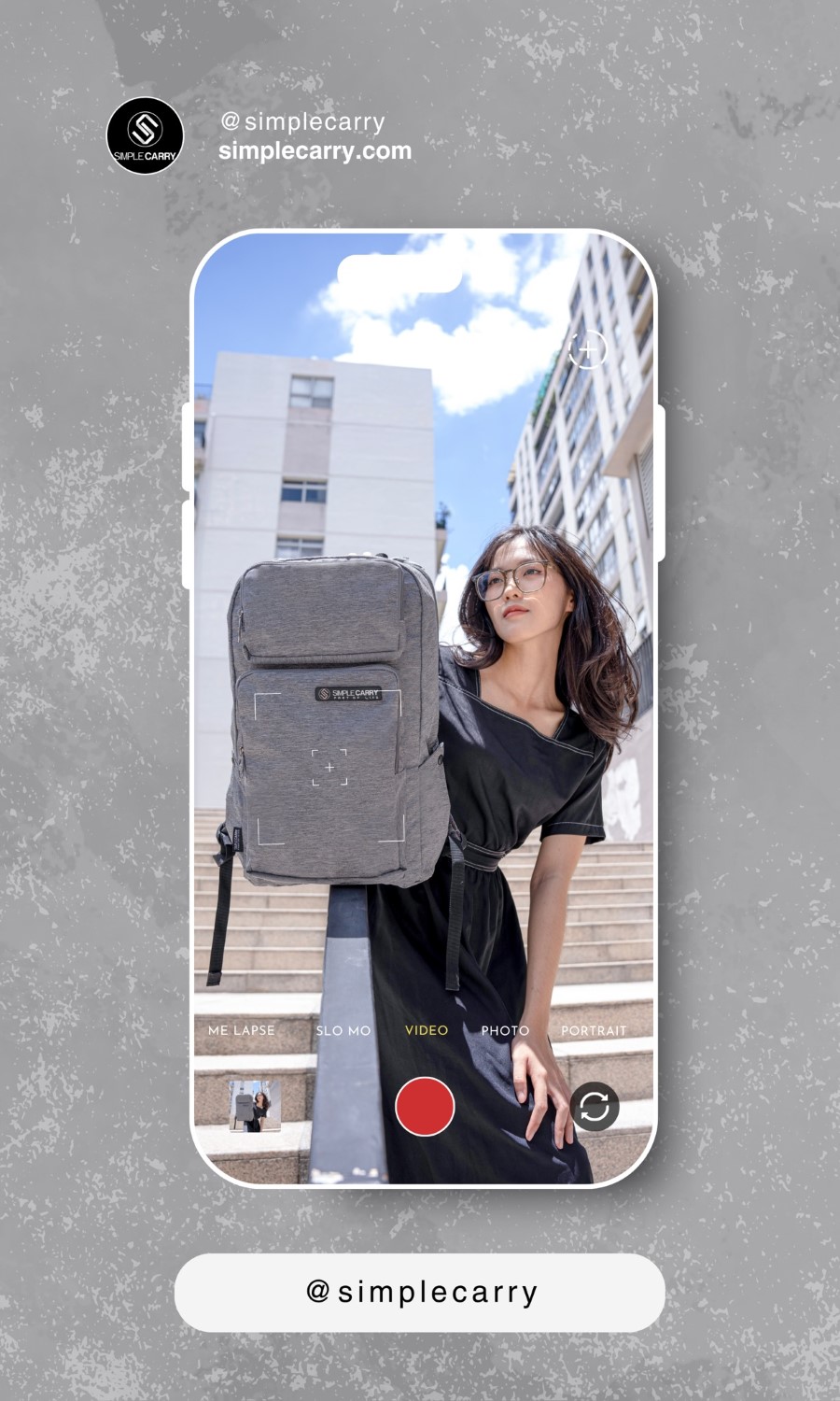- Mặt trước may đính logo thương hiệu Simplecarry.