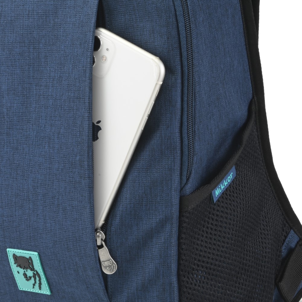 - Đệm lưng êm và thoáng khí. Mặt trước balo đính logo PVC biểu tượng thương hiệu MIKKOR nổi bật.