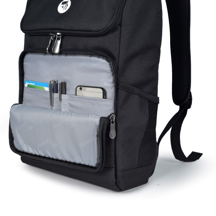 - Balo laptop Mikkor The Nomad Premier thiết kế với 1 ngăn chính lớn, 1 ngăn laptop cho các dòng máy 14 inch, 1 ngăn Ipad hoặc giấy tờ kích thước A4, 1 ngăn khoá kéo hộp trước cùng với nhiều ngăn nhỏ đựng phụ kiện bên trong, 2 bên hông túi được thiết kế với 2 ngăn lưới đựng bình nước hoặc phụ kiện hàng ngày.