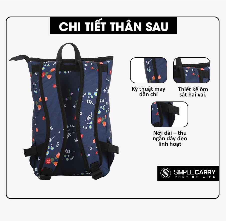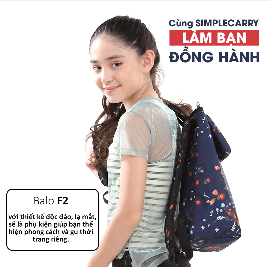 - Balo thời trang Simplecarry F2 thiết kế đơn giản, gọn nhẹ, họa tiết hoa thời trang phù hợp cho các bạn nữ.