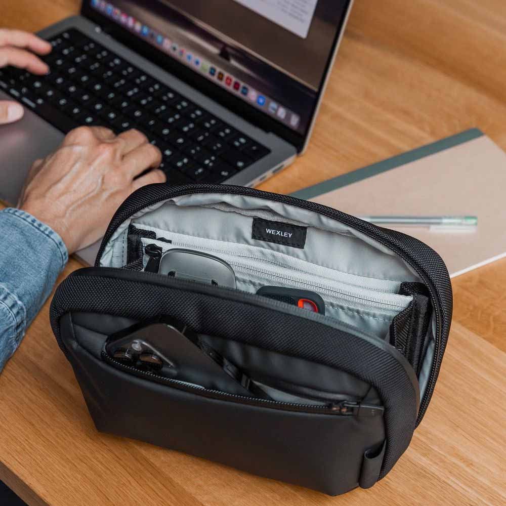 - Túi phụ kiện Wexley Adso Tech Organizer thiết kế đơn giản, màu đen cá tính giúp giữ đồ đạc của bạn an toàn và ngăn nắp khi di chuyển.