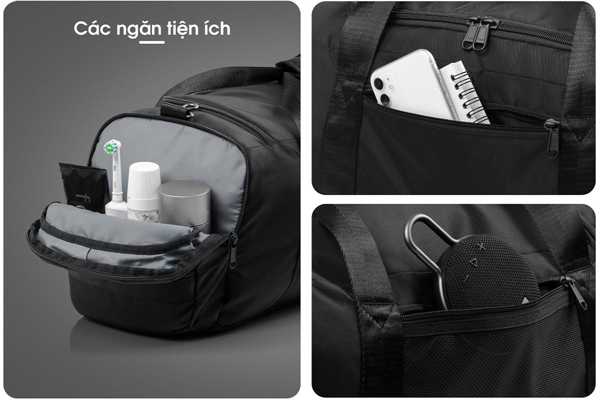 - Ngoài ra còn có các ngăn nhỏ tiện ích phía trước và sau túi.