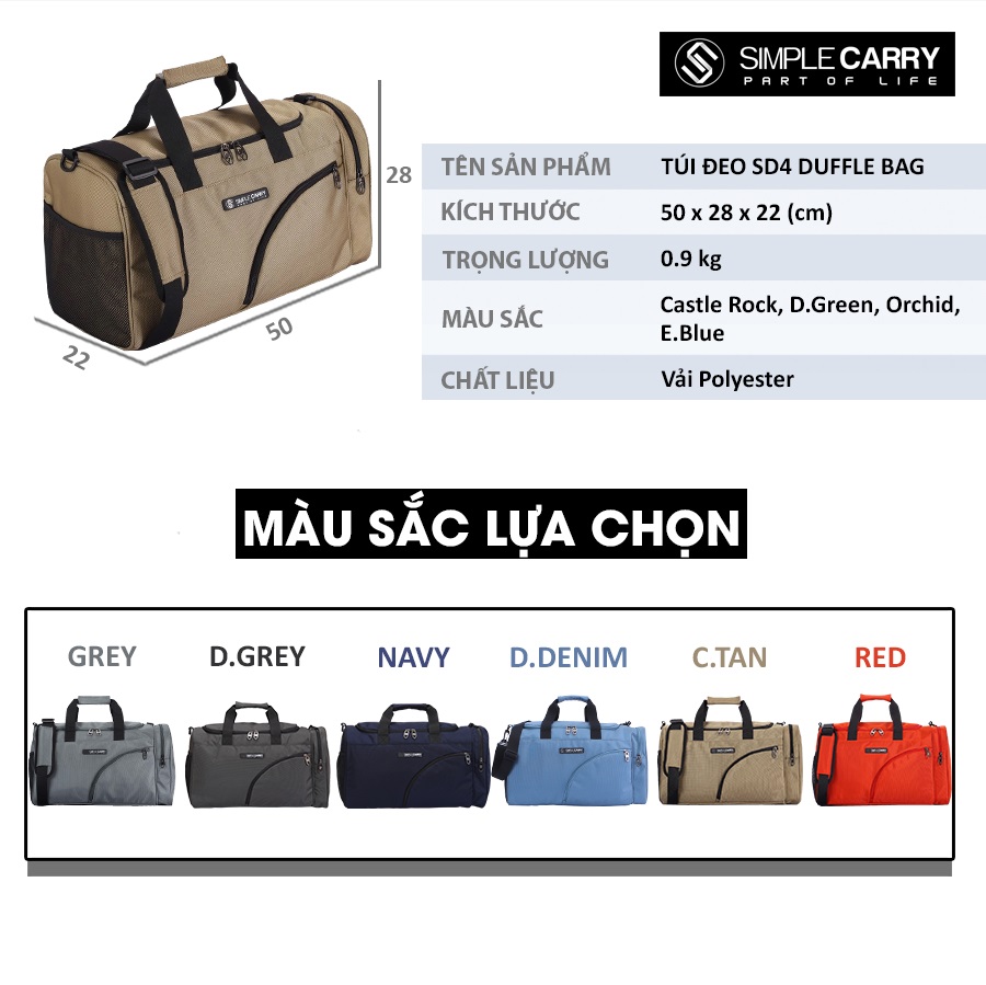 - Túi du lịch Simplecarry Duffle Bag SD 4 thiết kế dành cho các hoạt động thể thao hay sử dụng đi du lịch dài ngày.