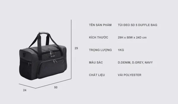 - Túi du lịch Simplecarry Duffle Bag SD 5 thiết kế dành cho các hoạt động thể thao hay sử dụng đi du lịch dài ngày.