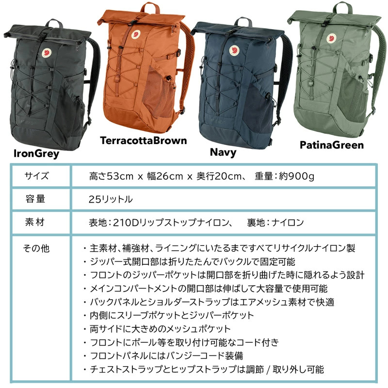 - Balo du lịch Fjallraven Abisko Hike Foldsack có dung tích 25 lít với trọng lượng nhẹ và đa năng, rất phù hợp cho các chuyến đi bộ đường dài hoặc du lịch ngắn ngày. Balo được làm bằng 100% nylon tái chế với phần đóng gập bằng khóa kéo và khóa cài bằng nhựa bền.