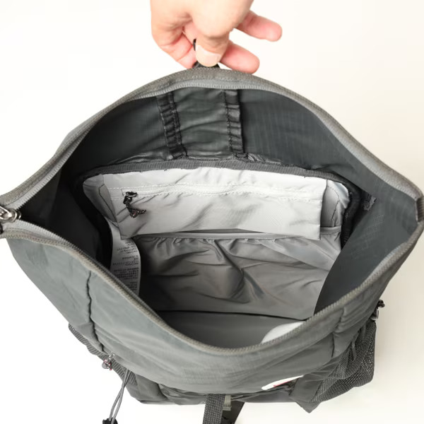 - Balo Fjallraven Abisko Hike Foldsack có khoang chính rộng rãi, bên trong có ngăn cho laptop 13 inch và ngăn nhỏ có khóa kéo.