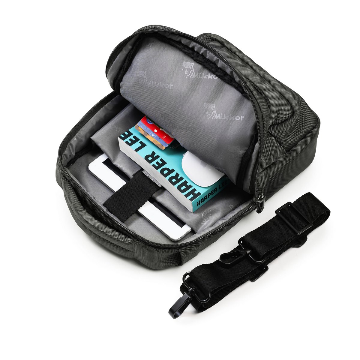 The Gibson Sling sử dụng vải Polyester 1260D WR 3PU và vải Polyester 210D tráng PU chống thấm bên trong in nổi logo Mikkor độc đáo. Tuy chỉ là dòng túi đeo Ipab nhưng được thiết kế với nhiều ngăn giống như một chiếc balo thu nhỏ với 3 ngăn chính và 1 ngăn phụ nhỏ phía ngoài.