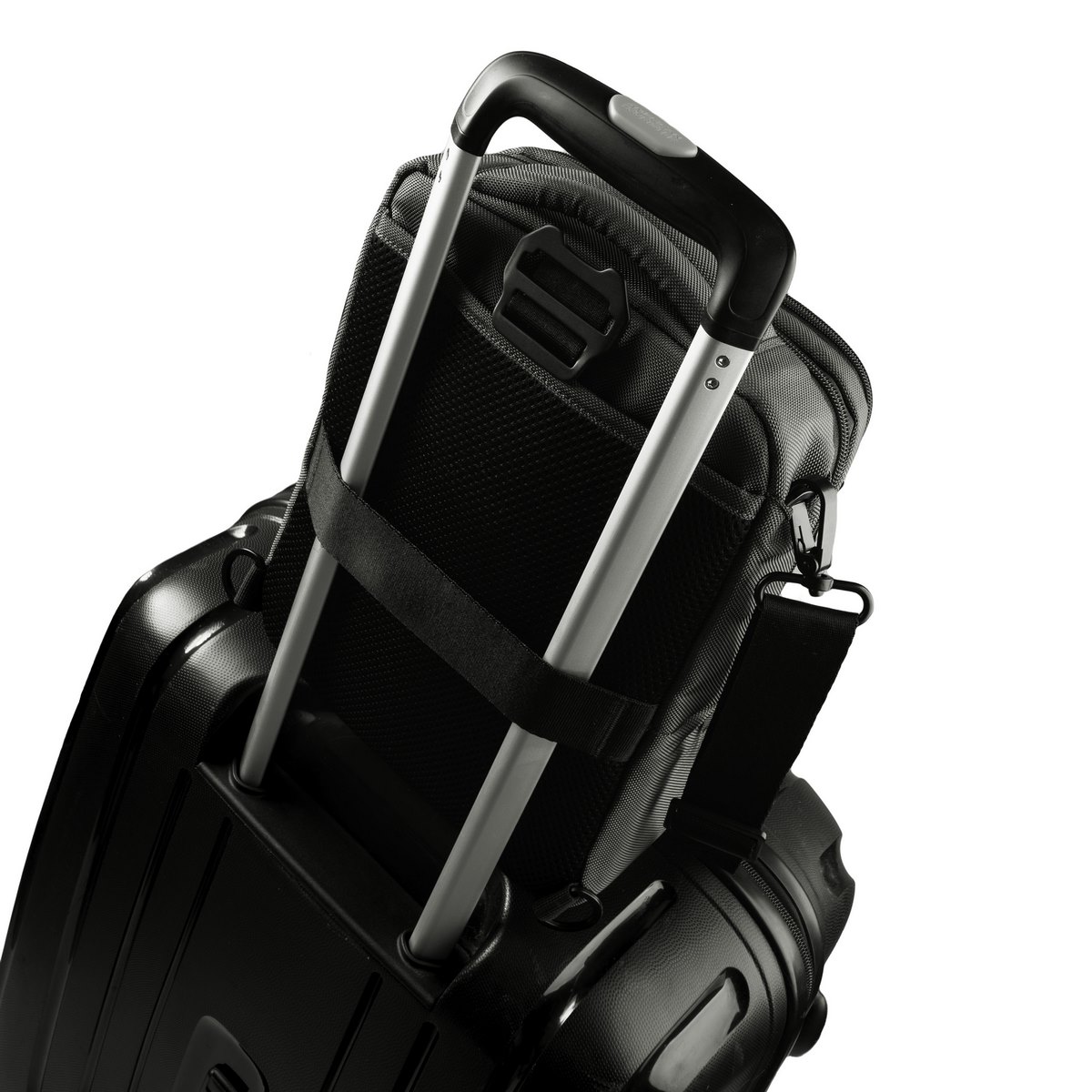 Phía sau cùng được thiết kế một vách để gắn vào tay kéo vali, giúp cho những chuyến công tác của bạn trở lên đơn giản và gọn nhẹ hơn.