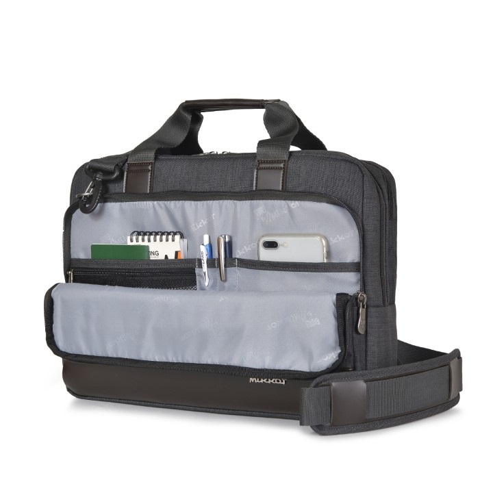 Mikkor The Ralph Briefcase được thiết kế nhiều ngăn tiện dụng, logo thương hiệu bằng hợp kim cùng ngăn dây kéo mở dọc tạo điểm nhấn cho sản phẩm.