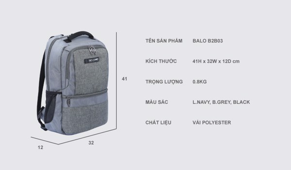 - Balo Simplecarry B2B03 gồm 1 ngăn chính và 2 ngăn phụ, để vừa laptop 14.1 inch.