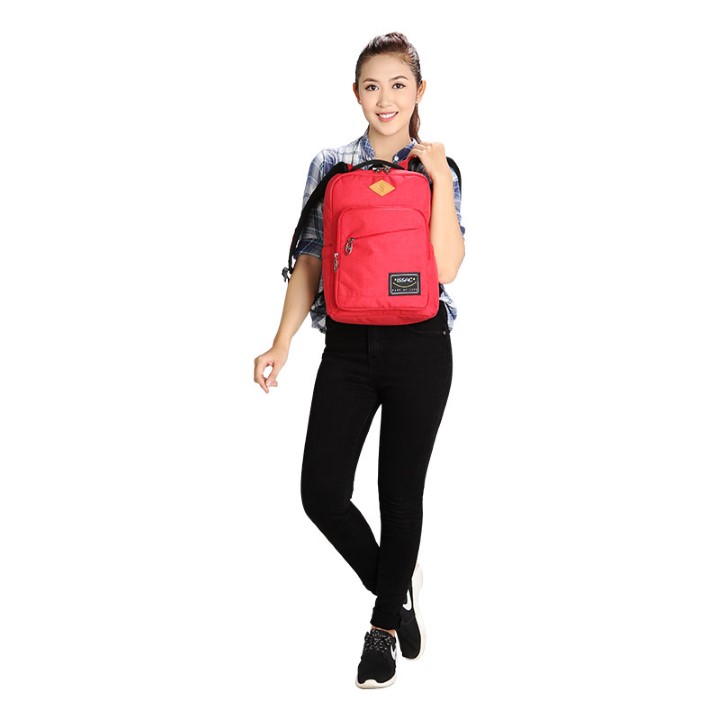 - Mặt trước có ngăn phụ với đầu khóa kéo, may nổi logo bằng da ở trên túi, label mặt cười ở góc phải.