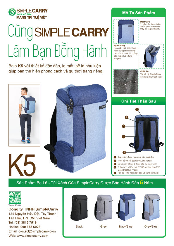 - Balo laptop Simplecarry K5 thiết kế độc đáo,