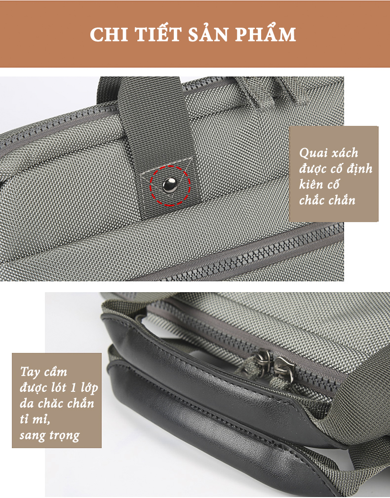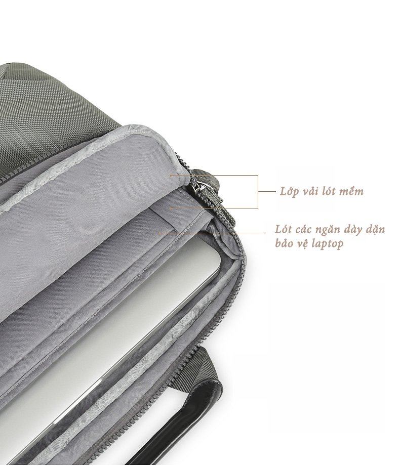 - Quai túi cùng khóa chống trượt giúp laptop của bạn nằm cố định trong túi